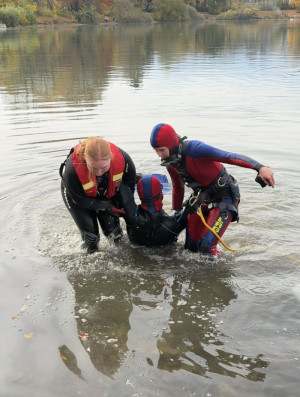 Die Ausbildung der Einsatztaucher:innen der Stufe 1 erfolgte im Rahmen einer bezirksweiten Ausbildungsinitiative und schloss mit einem Praxistag am Fasaneriesee in München ab.